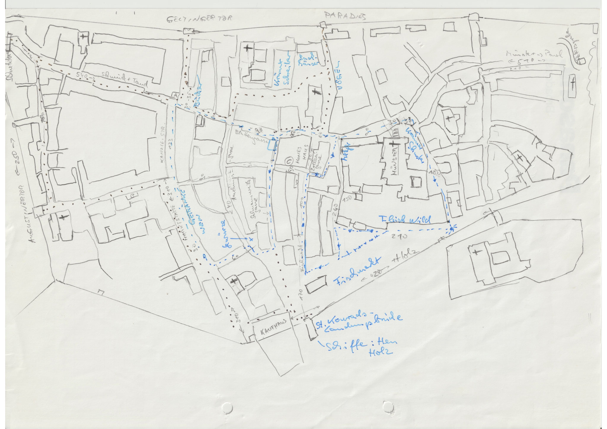 historischer Stadtplan von Konstanz mit Straßen, Märkten.